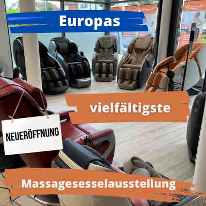 Plus de trente fauteuils de massage de fabricants renommés du monde entier seront disponibles à Weinstadt, aux portes de Stuttgart, à partir du 1er juillet 2021, pour être vus, touchés et testés.