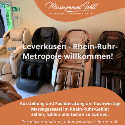Le propriétaire s'efforce de diffuser les avantages des fauteuils de massage en Allemagne. La nouvelle succursale dans la région métropolitaine Rhin-Ruhr à Leverkusen couvre ainsi la zone de chalandise densément peuplée autour de Cologne/Bonn, Mönchengladbach, Düsseldorf, Wuppertal, Essen et Dortmund.