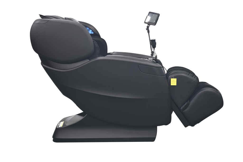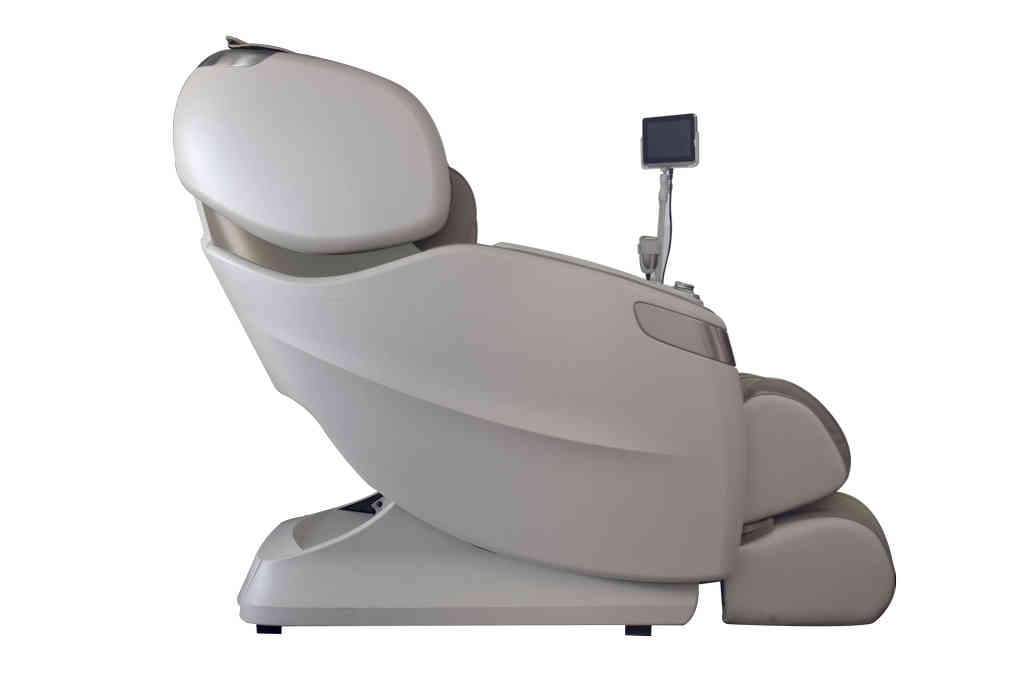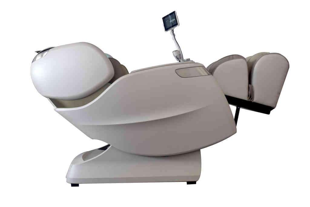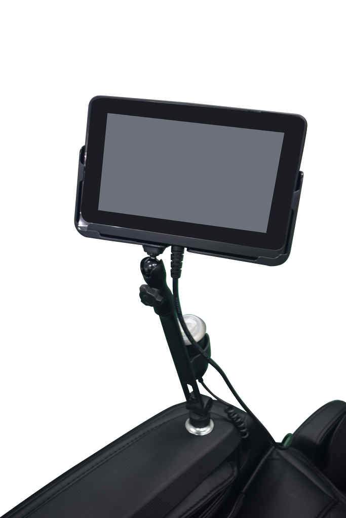 Le fauteuil de massage haut de gamme "Chef 2.0" AT 629 de la maison Alpha Techno est le successeur du légendaire AT 628. Outre des améliorations de détail du guidage de l'utilisateur sur la tablette, la principale évolution est un nouveau capteur pour mesurer l'humidité de la peau qui reflète le degré de tension. Dans le programme Chair Doctor, un contrôle corporel est effectué au début. Vous tenez le capteur dans votre main, entouré de votre poing et de votre pouce. Sur la base de cette mesure, un programme de massage individuel est ensuite établi pour masser les zones raides en fonction de la situation.