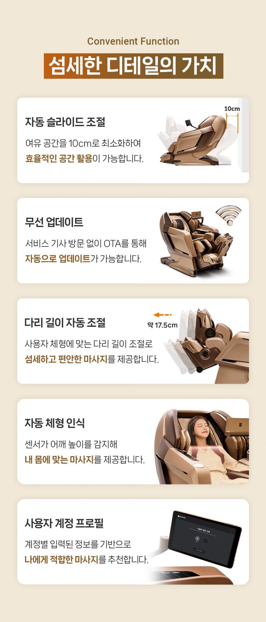 * Ligne vertébrale souple : un massage plus doux de la colonne vertébrale pour une expérience relaxante.