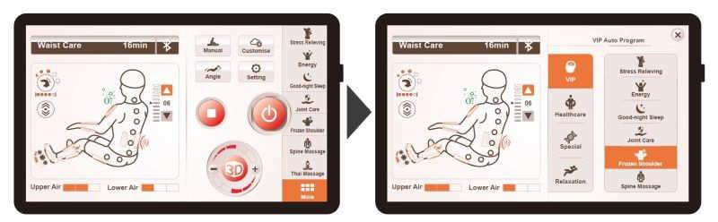 Le Skyliner II vous transporte dans un monde de calme et de détente de rêve. Une fois que vous vous êtes installé dans une position confortable, vous pouvez choisir l'une des nombreuses techniques de massage fabuleuses grâce à la télécommande à écran tactile facile à utiliser et vous détendre comme jamais auparavant.