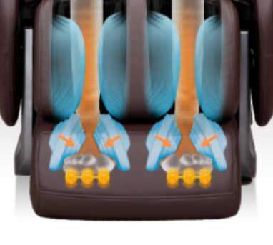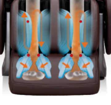 Grâce à la combinaison de matériaux de haute qualité et de technologies de pointe, le "pétrin à mollets" se consacre entièrement à votre détente et à votre santé. L'écran LCD entièrement graphique de la télécommande vous permet de sélectionner les différentes techniques et programmes de massage du "pétrin à mollets". Qu'il s'agisse d'un massage par tapotements, d'un massage par pétrissage vigoureux ou d'un massage par compression décontractant, le "pétrin à mollets" répond à tous les souhaits, même les plus individuels. Les mollets bénéficient également d'un programme de bien-être spécial : les rouleaux intégrés entourent intensivement vos jambes. De plus, les airbags innovants ont un effet bénéfique sur la musculature grâce à un massage de compression relaxant, tout en stimulant la circulation sanguine. Même les orteils n'ont pas été oubliés dans le "pétrin à mollets" : des airbags séparés enlèvent toute pression de chaque partie de vos pieds. L'ensemble de l'expérience de massage se déroule dans une atmosphère chaude et agréable grâce aux rouleaux de massage chauffés.