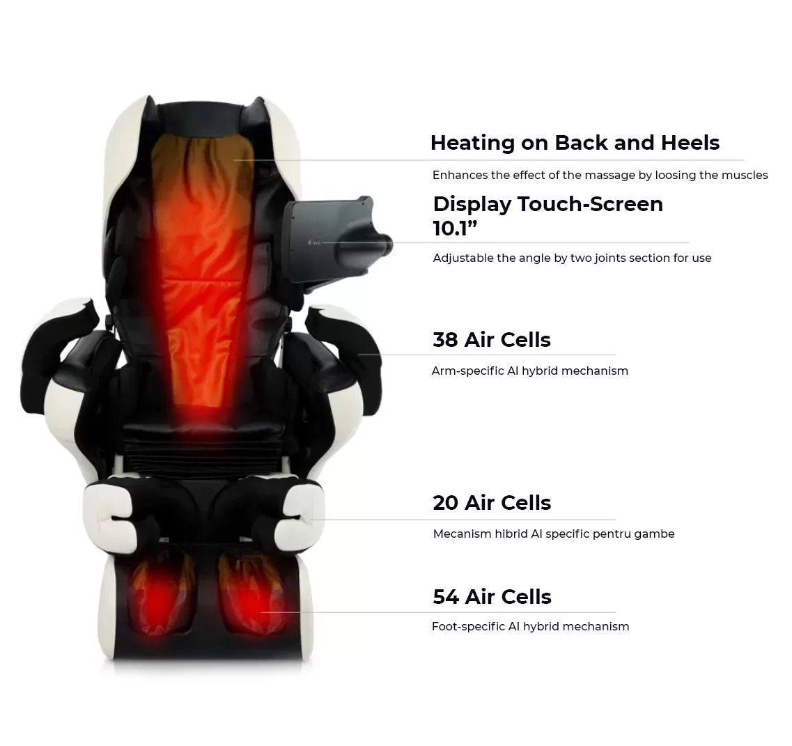 En collaboration avec des professionnels de la santé de premier plan, le "Robo" est un chef-d'œuvre qui se distingue nettement des produits concurrents traditionnels : Outre des fonctions de massage incomparables, ce fauteuil vous offre un soin mental et physique grâce à des programmes d'étirement, une adaptation de la posture et des sons relaxants. Un clic sur la télécommande simple permet de configurer très facilement les 24 programmes variés du "Robo". Parmi ceux-ci, on trouve entre autres un massage de l'omoplate qui maintient la poitrine, un massage pétrissant à cinq doigts, un massage de compression des muscles fessiers ou un massage Shiatsu 3D de la couche profonde de la plante des pieds. Une particularité efficace réside dans les mouvements et les exercices de respiration intégrés, connus du yoga. Ceux-ci améliorent non seulement la flexibilité et la force musculaire, mais ont également un effet positif sur votre sens de l'équilibre. Sa technique de méditation appelée "zazen", qui contribue à corriger votre posture, mérite également d'être saluée. Un programme spécialement conçu pour les jeunes profite à la santé mentale et physique des enfants qui grandissent rapidement. Mais le point fort du "Robo" est sans aucun doute son "mécanisme hybride IA" : grâce à l'intelligence artificielle, ce fauteuil de massage offre un confort qui dépasse les options des mains humaines. Entièrement automatique, il s'adapte à l'utilisateur en fonction de la forme et de la taille des muscles ainsi que du degré de rigidité musculaire et calcule ensuite la force et la durée optimales du massage. Grâce à la stimulation personnalisée de 365 points Shiatsu, le "Robo" ne vous offre pas seulement un fauteuil de massage décontractant, mais aussi une merveille précieuse pour votre santé, qui soutient avec précision le bien-être physique et psychique de tous les membres de la famille, à tout âge.