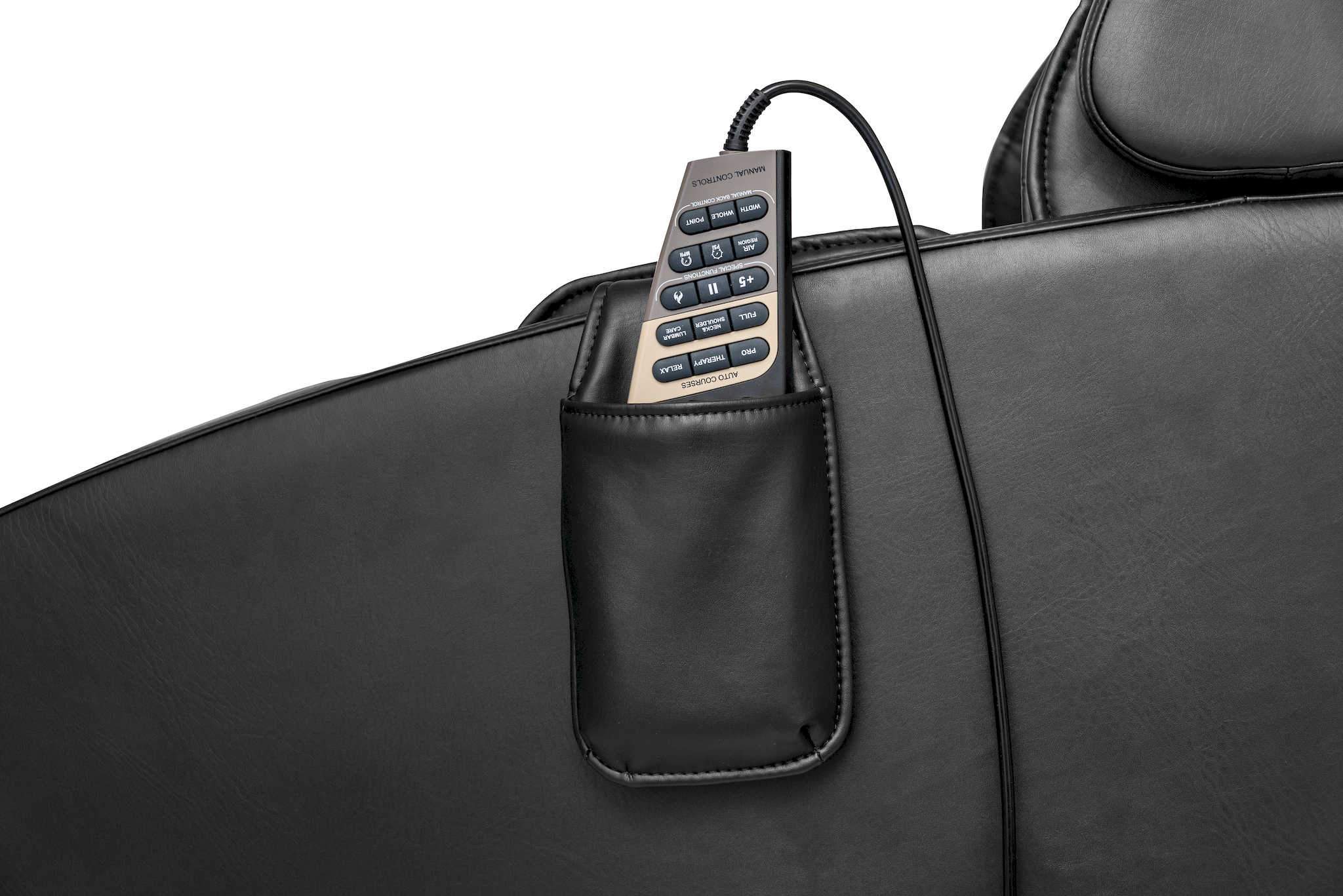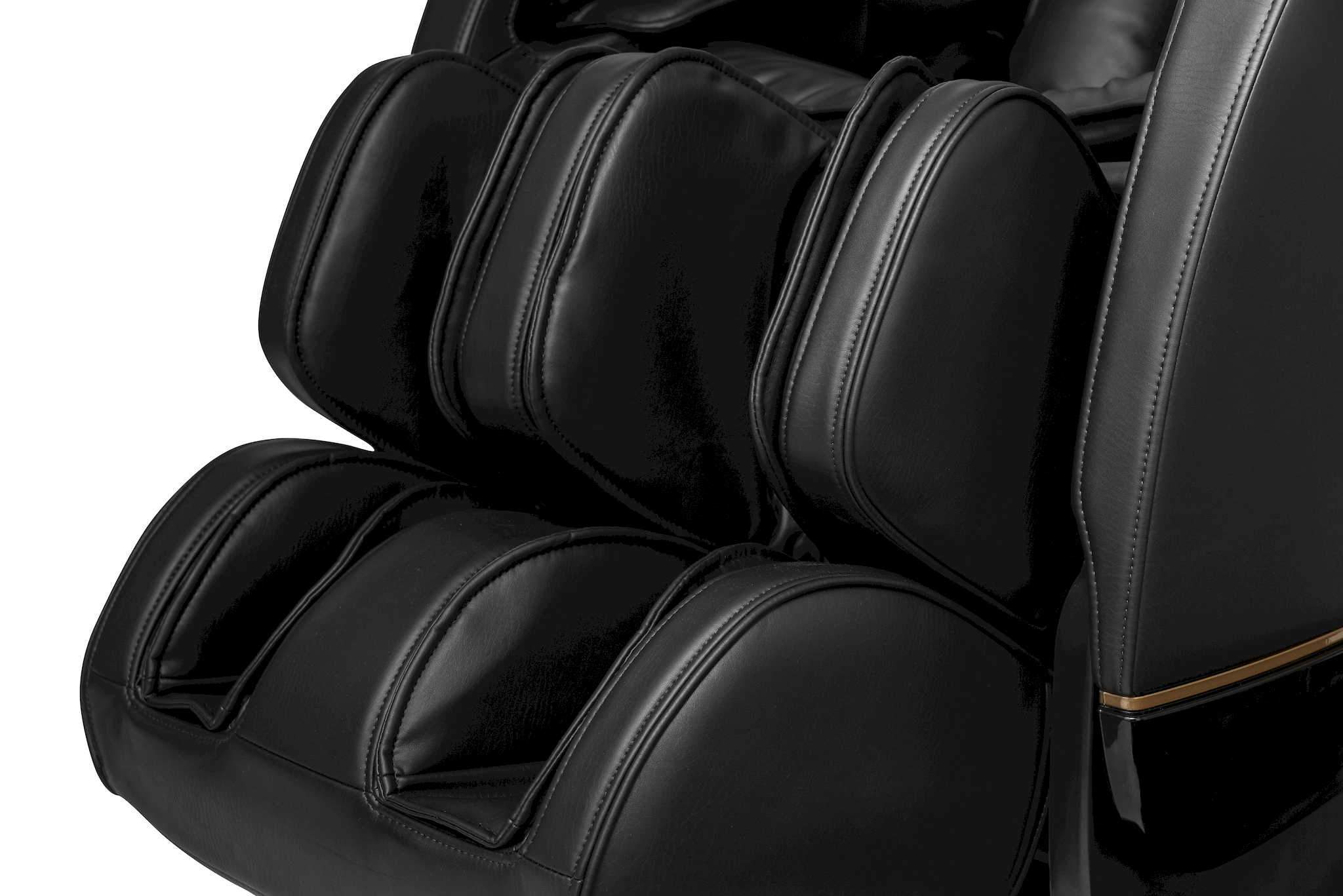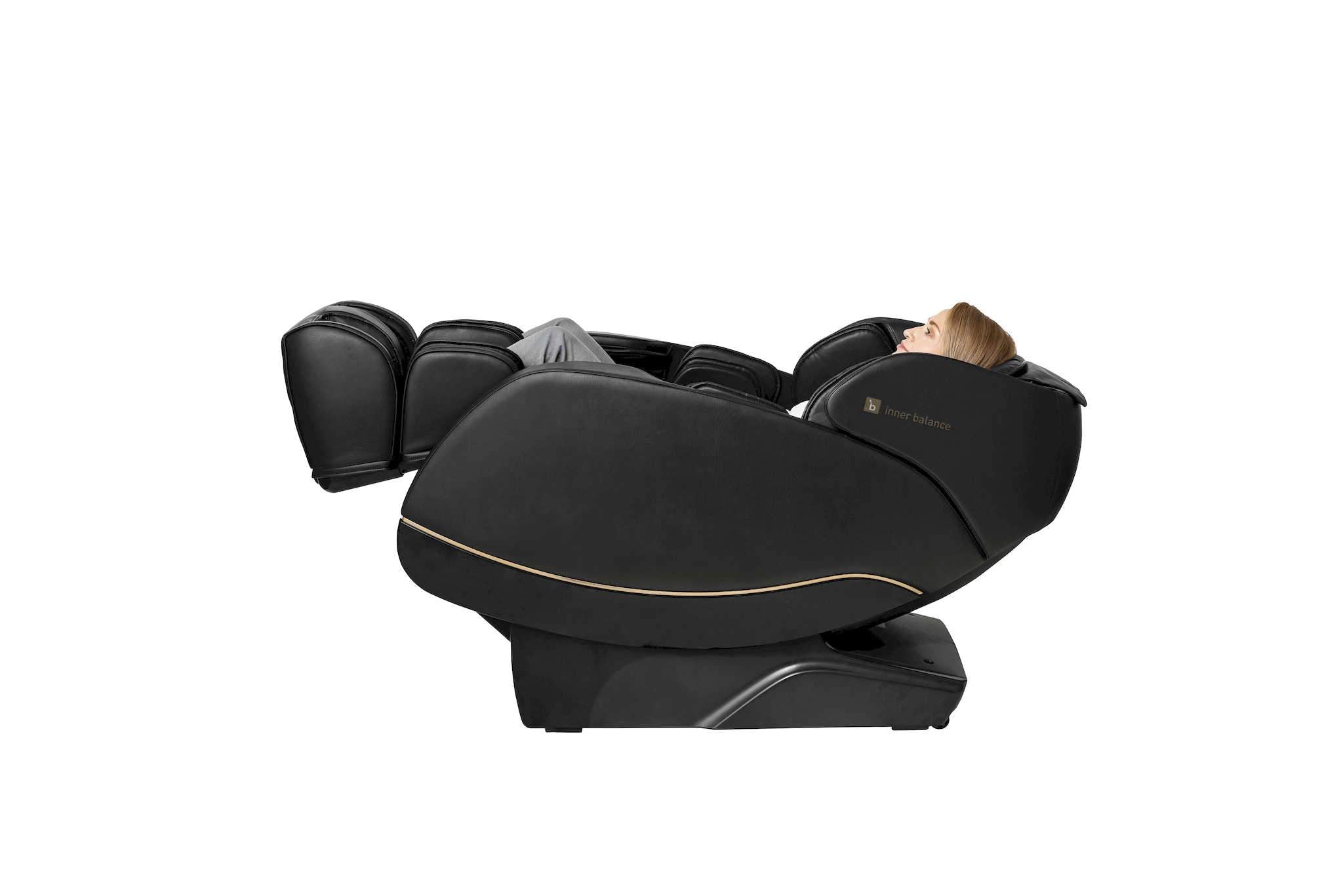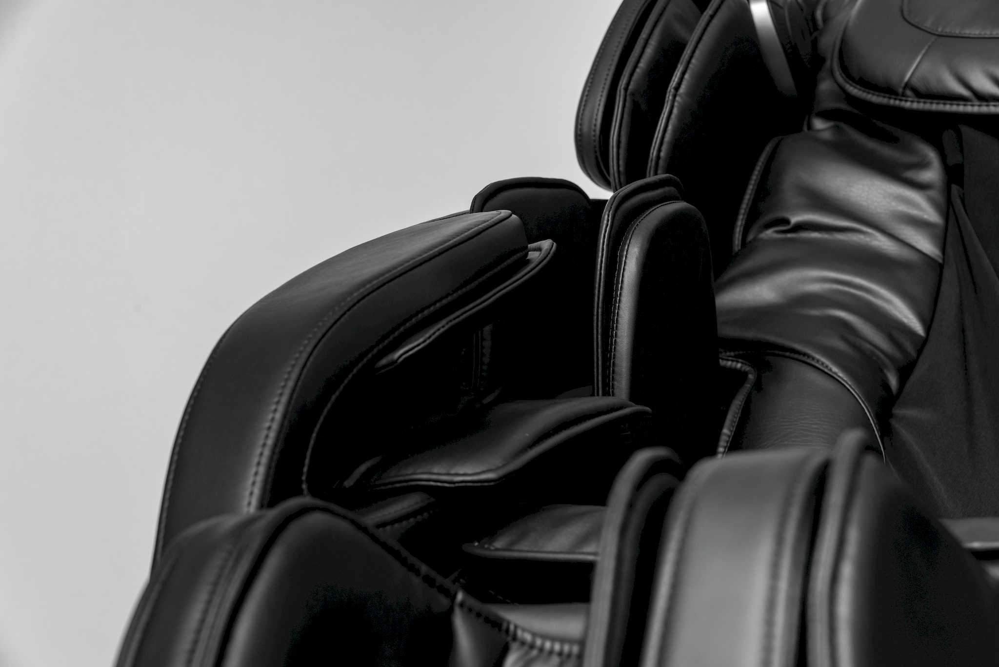 Le fauteuil de massage haut de gamme "Jin 2.0" de la maison Inner Balance va bien au-delà de la norme avec son répertoire de fonctions - la combinaison de matériaux de qualité et d'un aspect élégant n'est qu'un de ses avantages. Son revêtement en similicuir noir, facile à entretenir, est non seulement particulièrement durable, mais aussi d'une qualité de finition remarquable. Avec ses dimensions exceptionnellement compactes selon la construction dite "Zero Wall", le "Jin" ne nécessite qu'une distance de 5 cm par rapport au mur situé derrière et peut donc non seulement s'intégrer sans problème dans n'importe quel intérieur, mais aussi être placé discrètement dans un coin. Des accoudoirs spéciaux en forme de "U+C" assurent un contact optimal entre les bras et les éléments de massage, quelle que soit la position du fauteuil. Son repose-pieds est étonnamment large pour le marché européen.