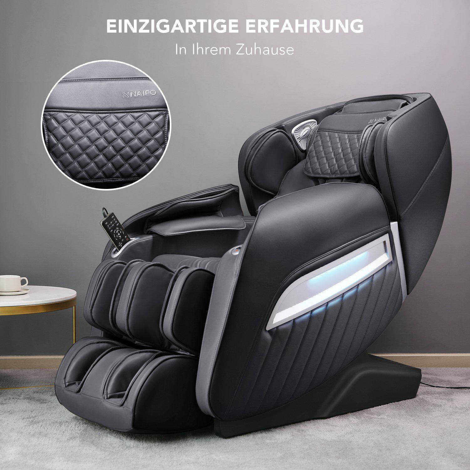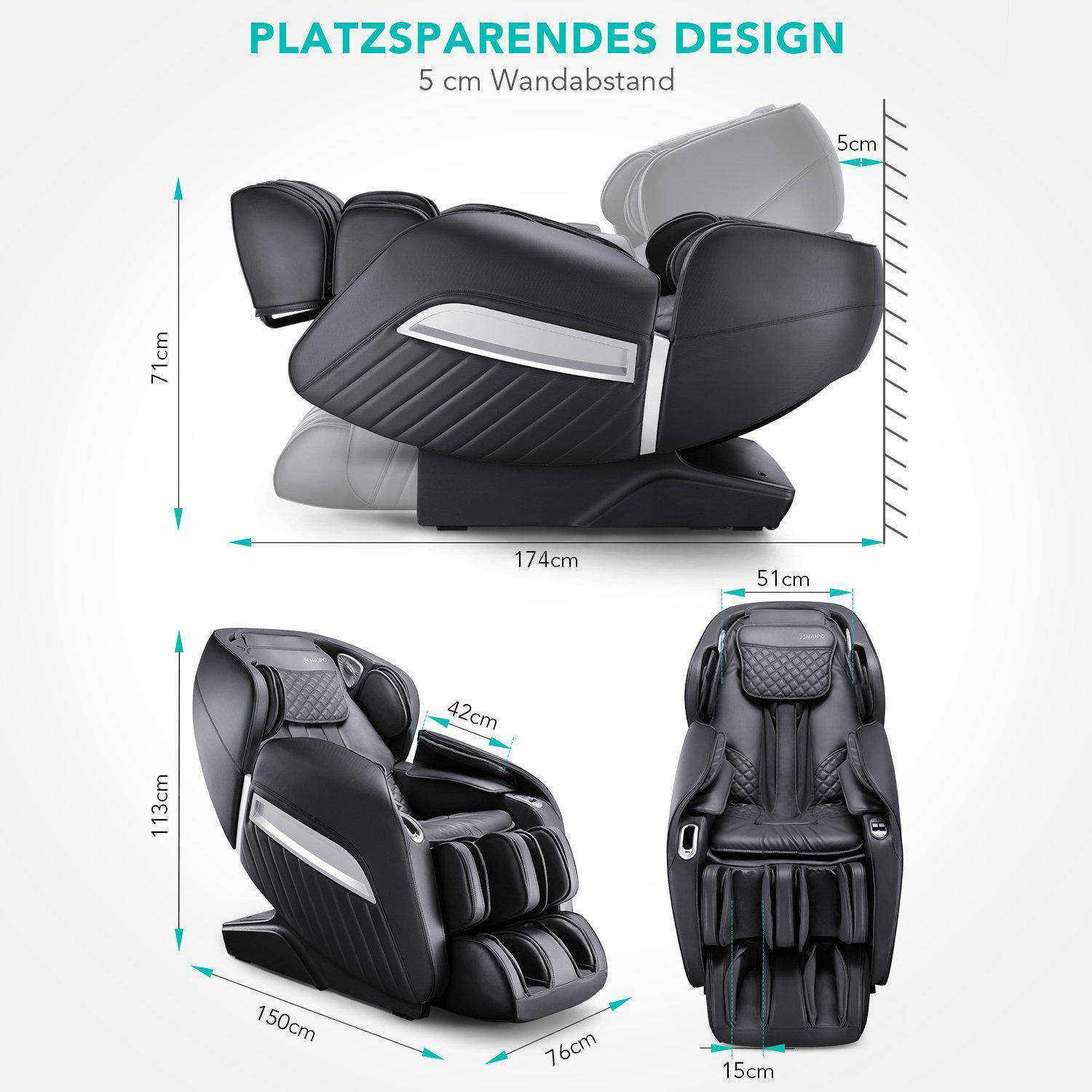 Avec le "débutant" MGC-A350 de la maison NAIPO, vous n'apportez pas seulement votre temple personnel du bien-être à la maison, mais aussi un bijou optique qui s'intègre élégamment dans votre oasis de bien-être. Le cœur de ce "débutant" au design compact séduit par son rembourrage douillet et son design "Zero Wall" peu encombrant. Ce mode de construction bien pensé permet un positionnement à une distance minimale du mur situé derrière ou un placement discret et sans problème dans un coin. Recouvert d'un similicuir durable, disponible en noir et en marron clair, les éventuelles salissures s'enlèvent en un clin d'œil avec un chiffon humide. Des accents nobles dans un motif en losange surpiqué soulignent le caractère luxueux du "débutant". Un repose-pieds réglable en longueur sur 20 centimètres permet aux utilisateurs mesurant jusqu'à 1,80 mètre de bénéficier d'une utilisation complète. Les utilisateurs de plus grande taille doivent toutefois tenir compte du fait que le fauteuil de massage ne peut être utilisé que de manière limitée au niveau des épaules, en raison de leur stature.