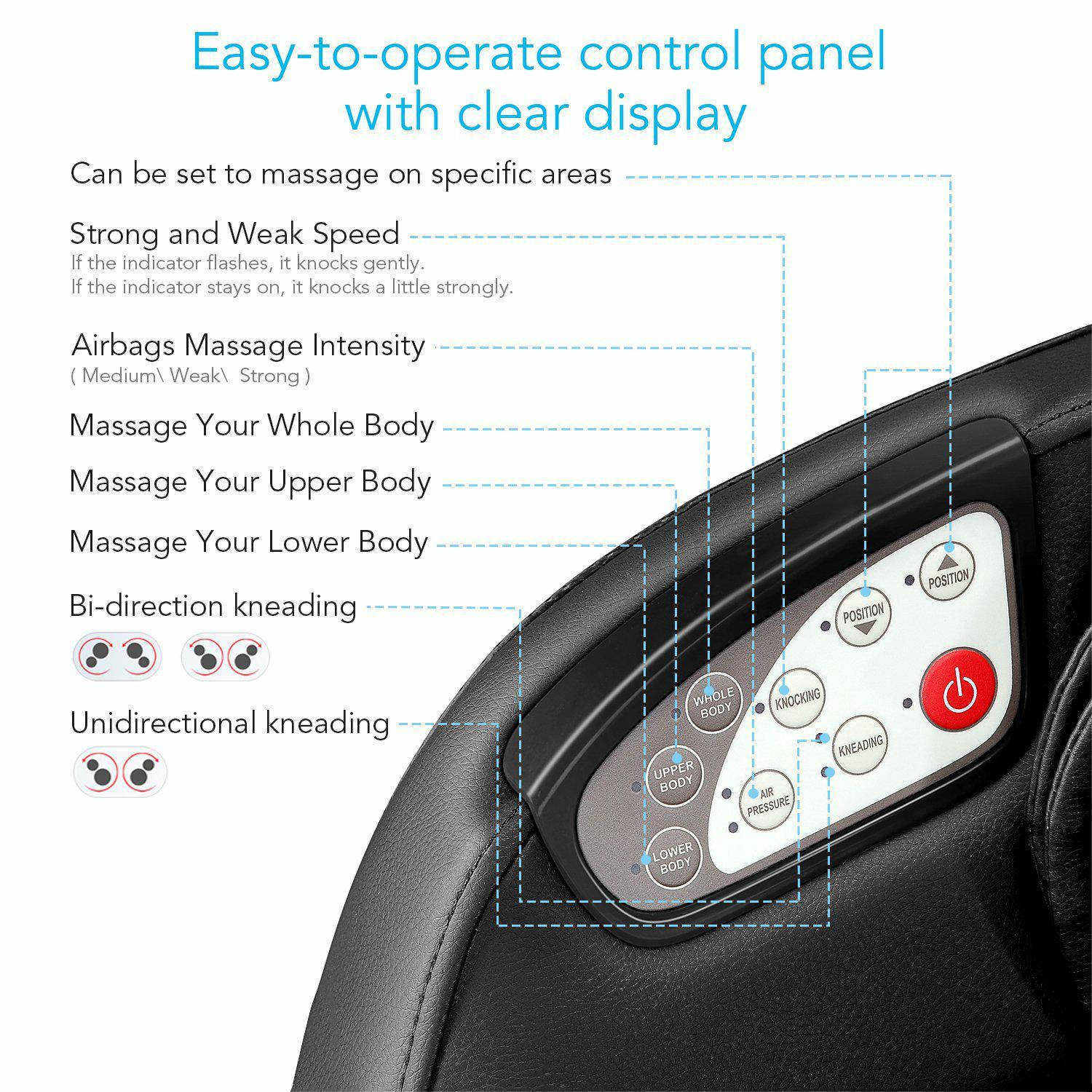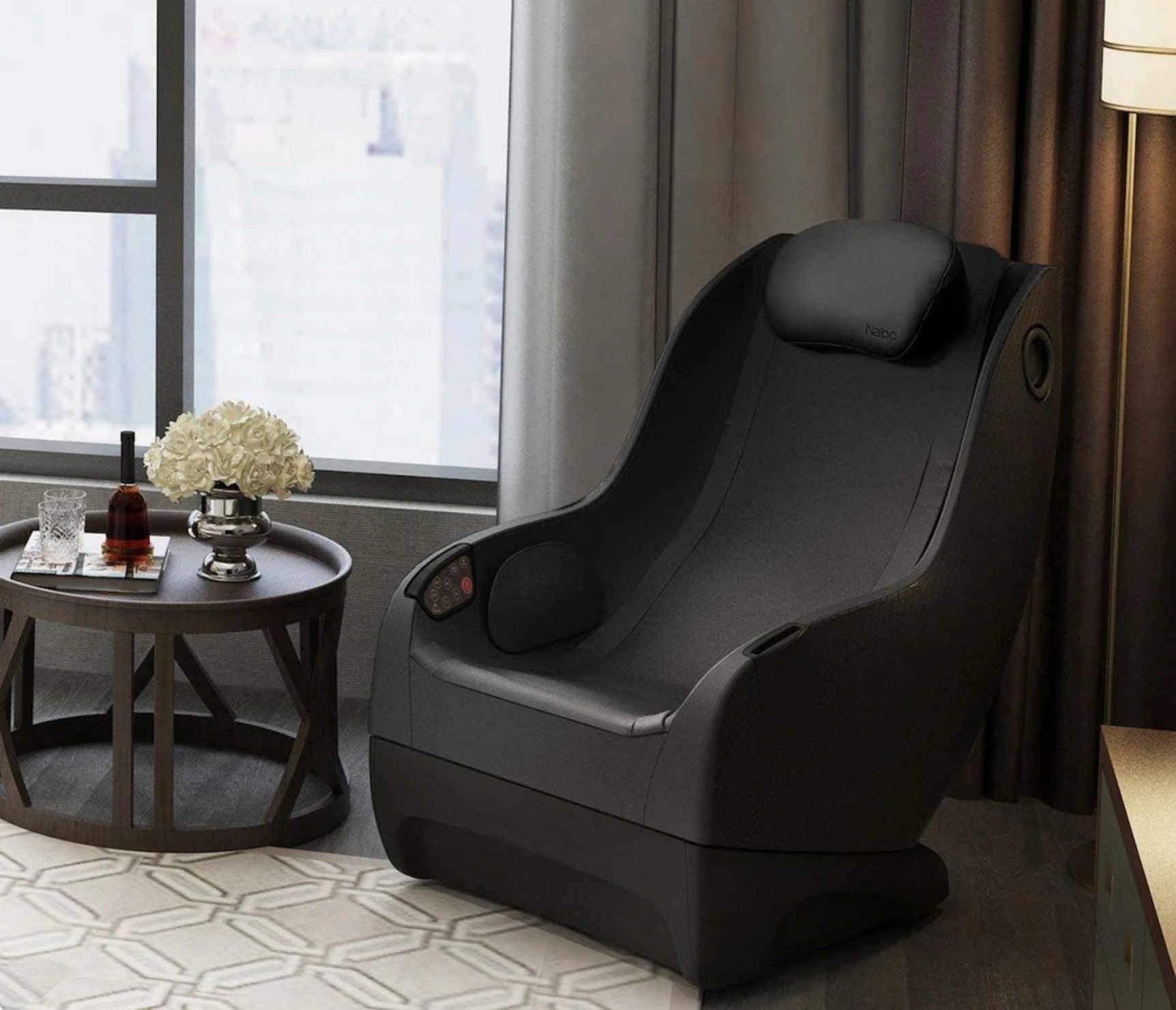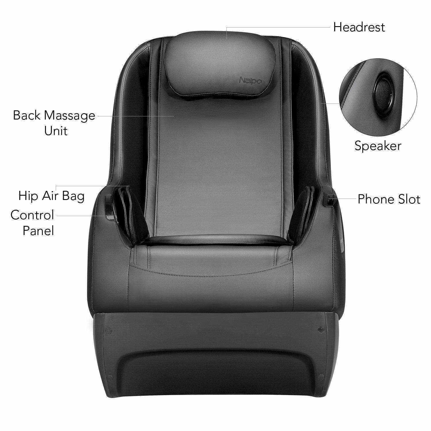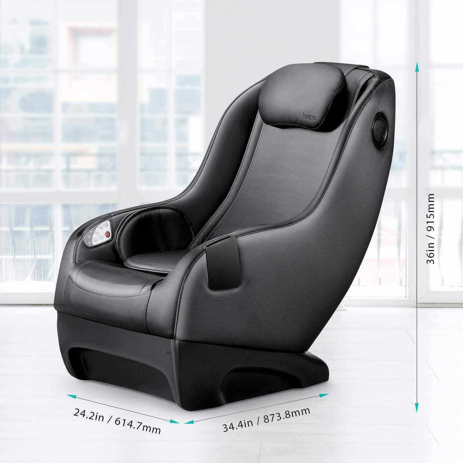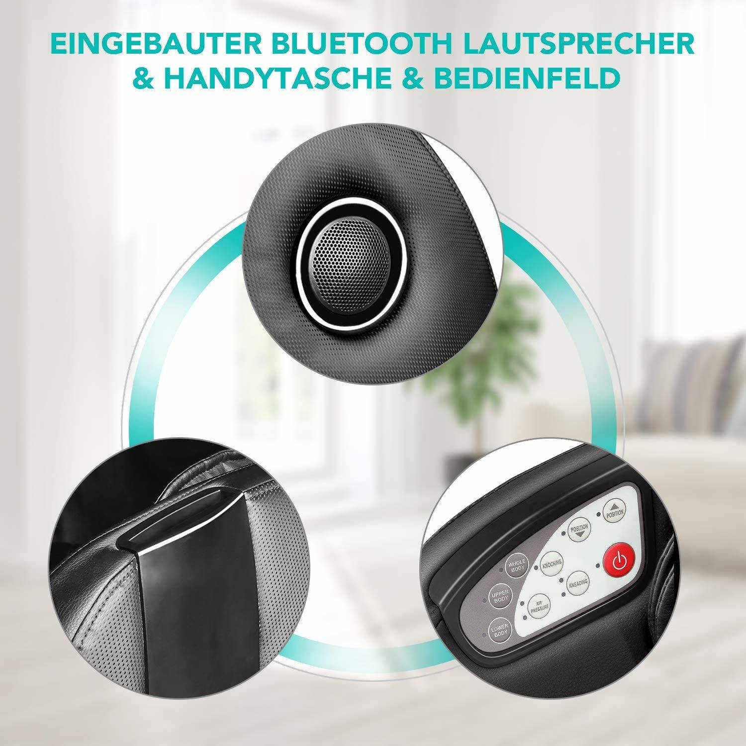 Avec ses dimensions remarquablement compactes de seulement 0,5 m² environ, le "compact" MGCHR-A150 de la maison NAIPO est un véritable miracle de place et peut être placé sans problème dans chaque appartement. Ce fauteuil de massage ergonomique convainc directement au premier coup d'œil par son design intemporel et son aspect de bon goût. Son revêtement en similicuir est non seulement particulièrement durable, mais aussi très facile à entretenir : un chiffon humide permet d'éliminer les éventuelles salissures en un tour de main. Outre ses fonctions de massage bénéfiques pour la santé, le "compact" offre d'autres caractéristiques utiles : Grâce aux haut-parleurs Bluetooth intégrés, vous pouvez diffuser des sons relaxants pendant le massage, qui contribuent à créer une atmosphère agréable grâce à leur effet sonore 3D. Un support pour téléphone portable sur l'accoudoir vous permet de ranger confortablement votre téléphone portable pendant le massage. Pendant ce temps, le design fin en forme de L du "Compact" épouse parfaitement votre corps. Malgré tous ses avantages, il s'agit d'un modèle d'entrée de gamme optimal, notamment en raison de son rapport qualité-prix imbattable. Un coussin et un rembourrage d'assise amovibles transforment le "Compact" en un fauteuil de relaxation confortable qui invite à une soirée télé détendue ou à une petite sieste.