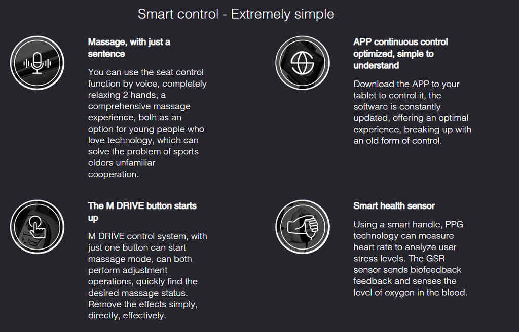 Alimenté par le microprocesseur avancé M.6 Gen, Master Drive apprend et adapte son massage, modifiant la pression de massage, la vitesse et les mouvements pour s'adapter parfaitement aux contours de chaque corps unique grâce aux rouleaux de massage intelligents Vario Motion 4D.