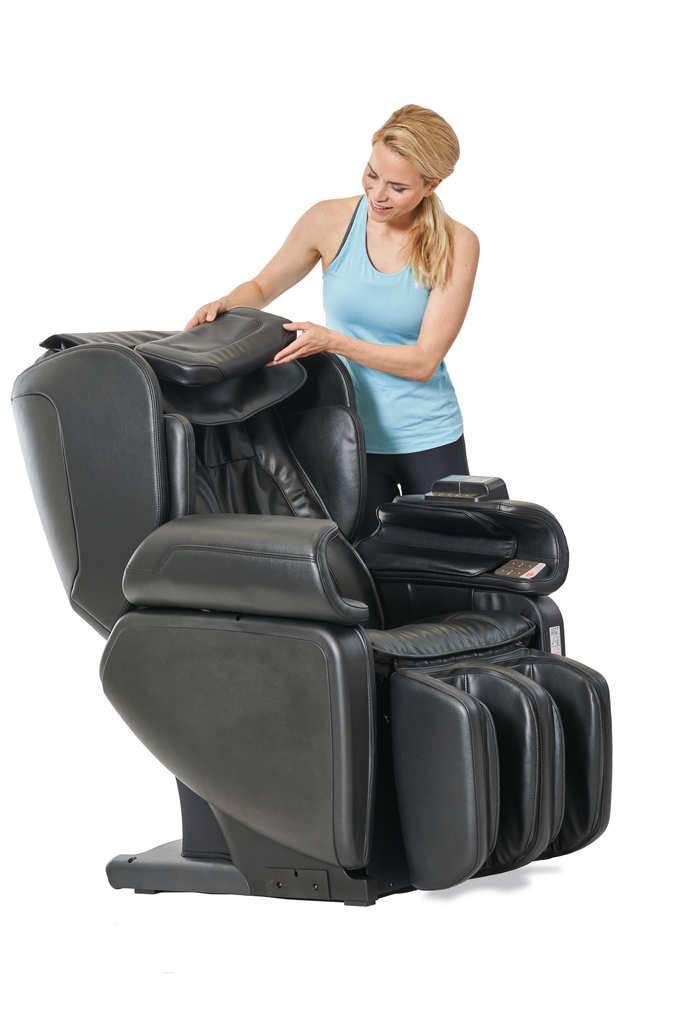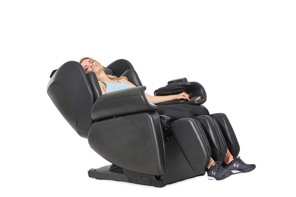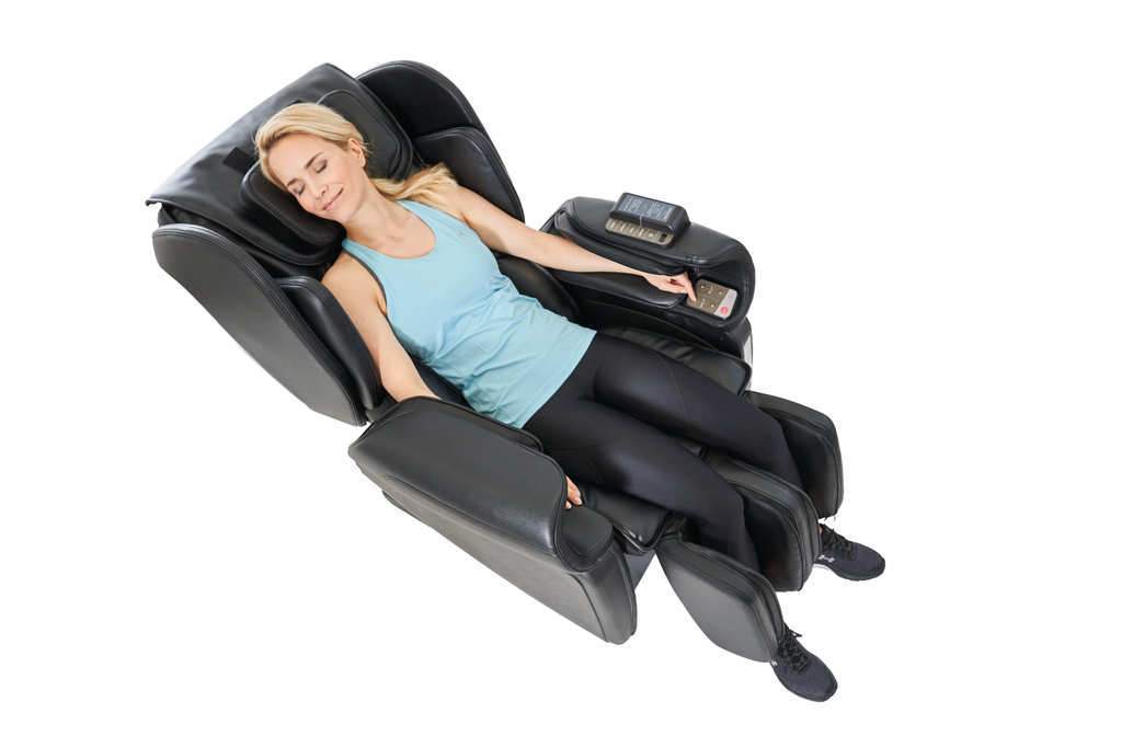 L'inclinaison du dossier et du repose-jambes se fait en continu selon les préférences individuelles. Il n'est même pas nécessaire d'enlever ses chaussures pour ce massage thérapeutique de tout le corps.